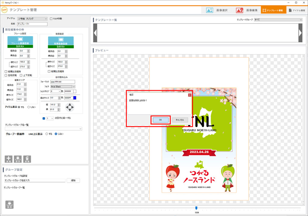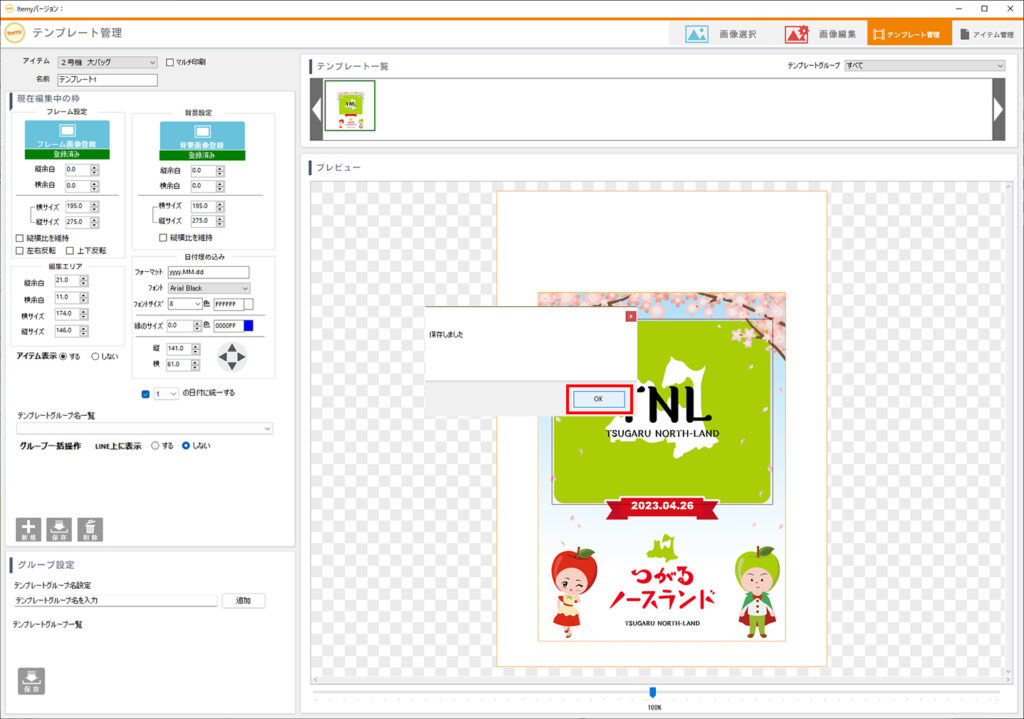 1. 「OK」ボタンを押します。完了後、テンプレート一覧に追加されます。