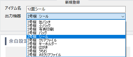 | ③出力機器 | プリンタードライバーで設定したドライバーを選びます。 ドライバーの設定で④用紙のサイズが固定されます。 ![]() |