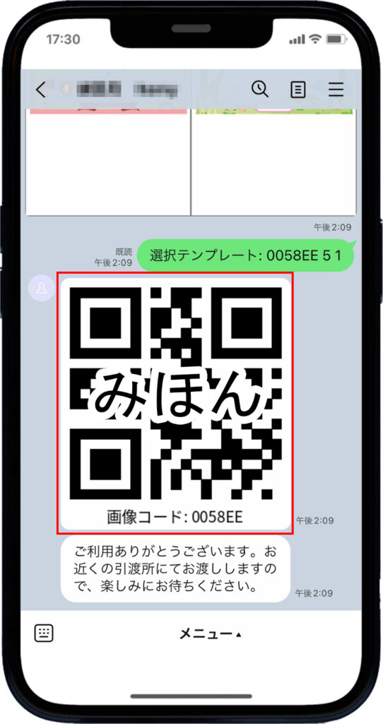 テンプレートを選択するとQRコードが発行されます。