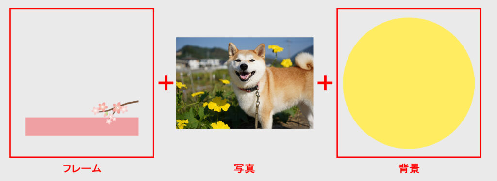 - テンプレートは基本、フレームの下に写真さらにその下に背景という構成になっています。様々な写真に対応できるよう、背景を設定します。