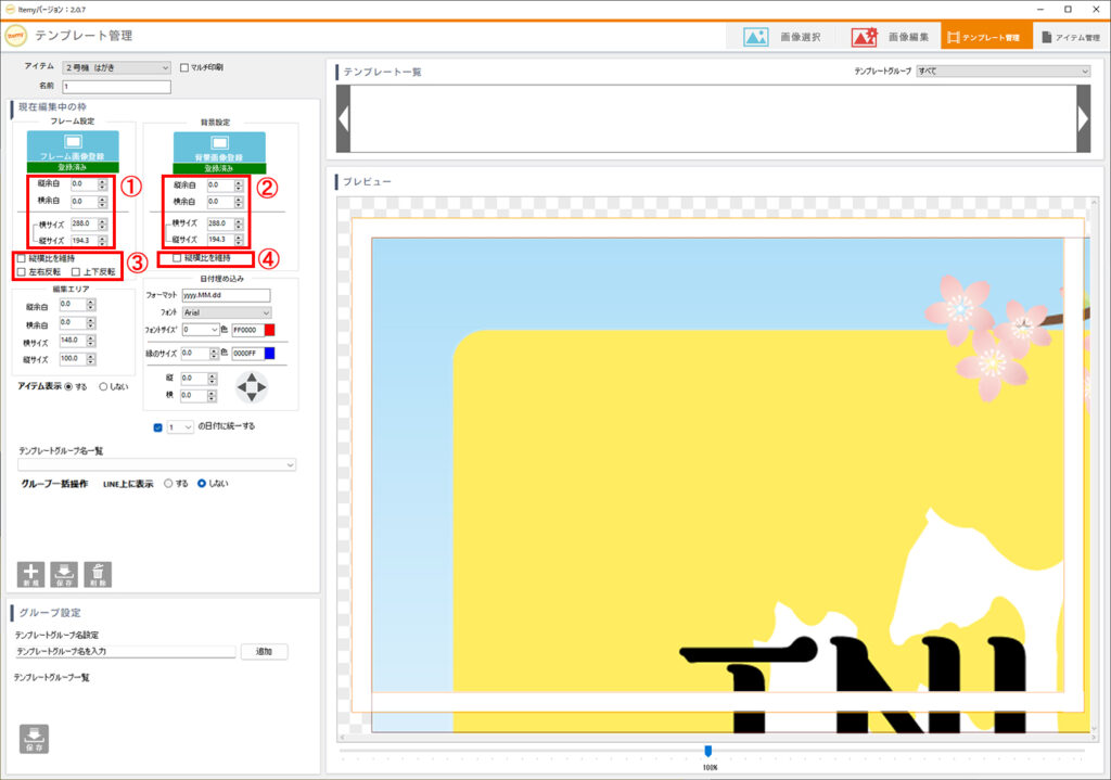 2.フレーム、背景画像のサイズ調整