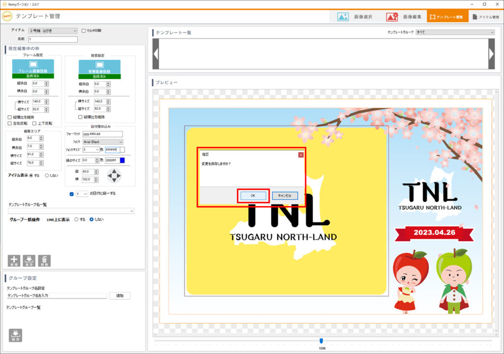 - 「OK」ボタンを押します。完了後、テンプレート一覧に追加されます。