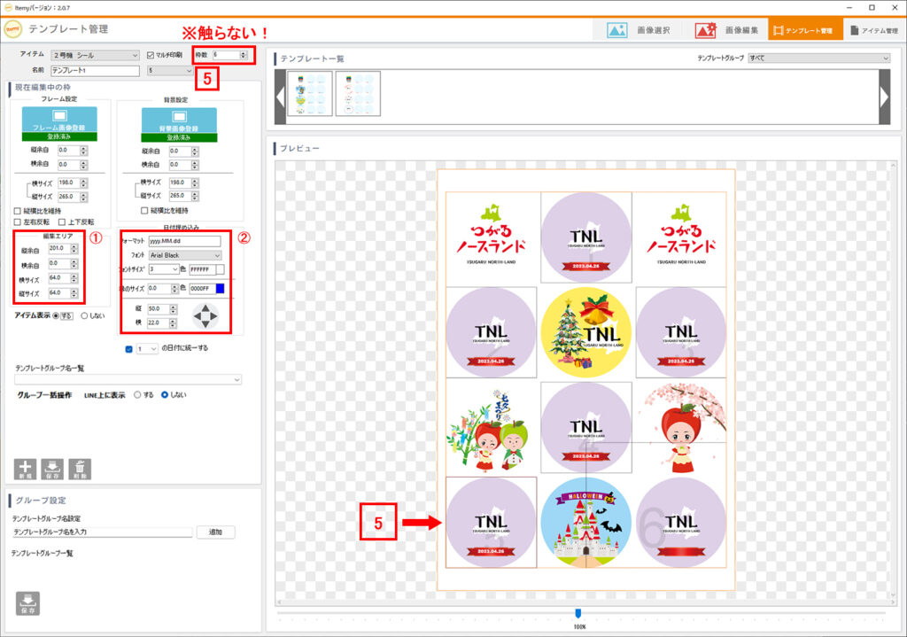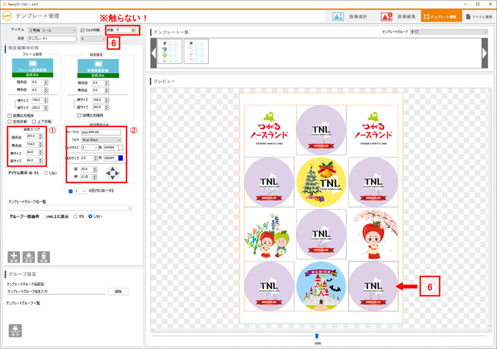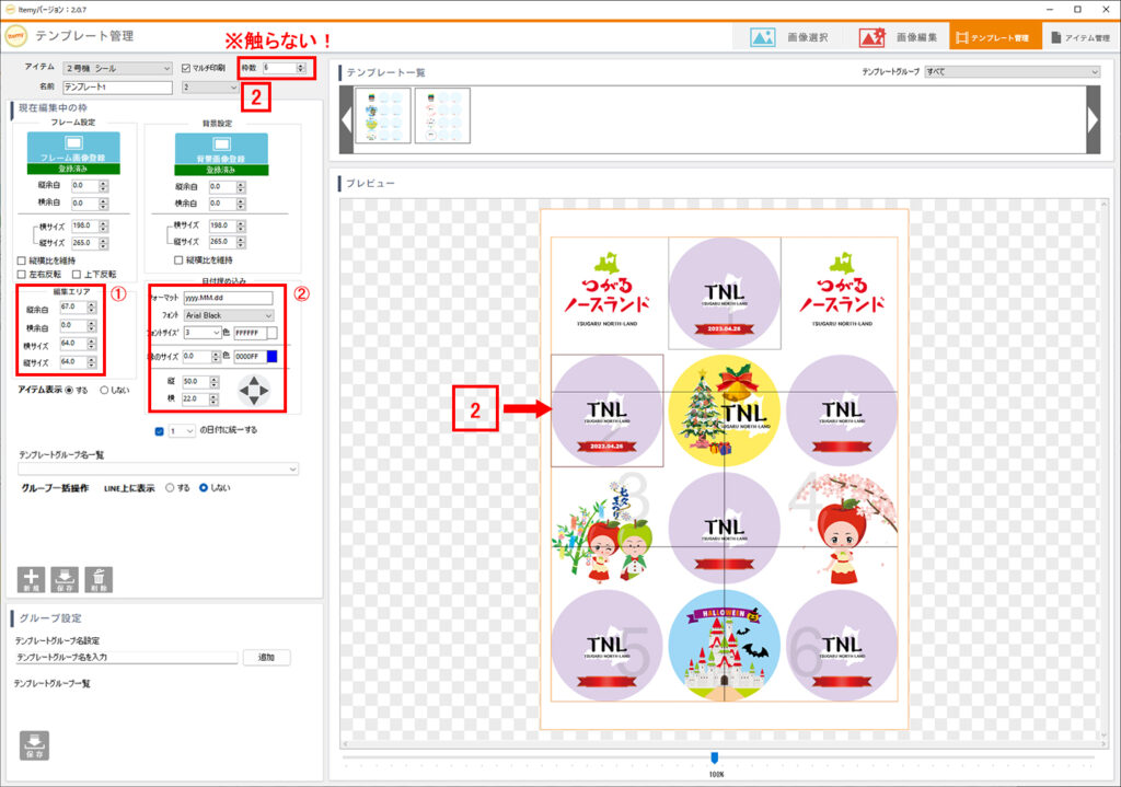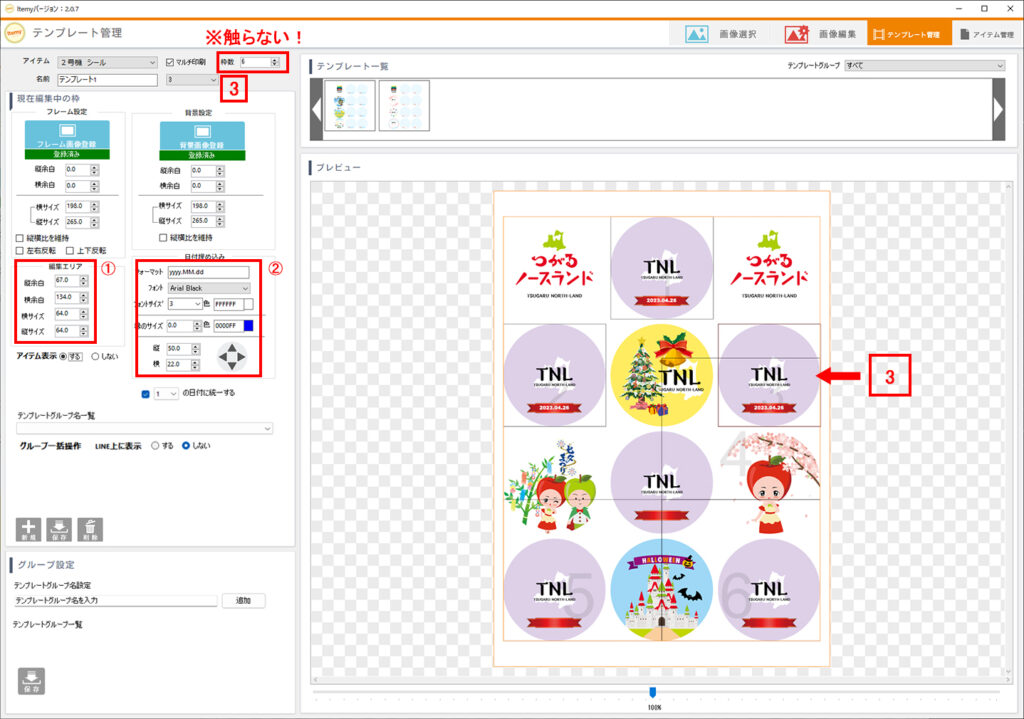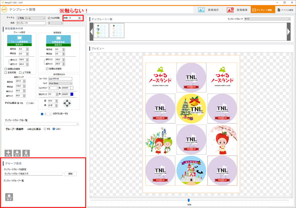 - アイテム欄はプルダウンから「シール」を選び、名前欄には任意のテンプレート名を入力します。